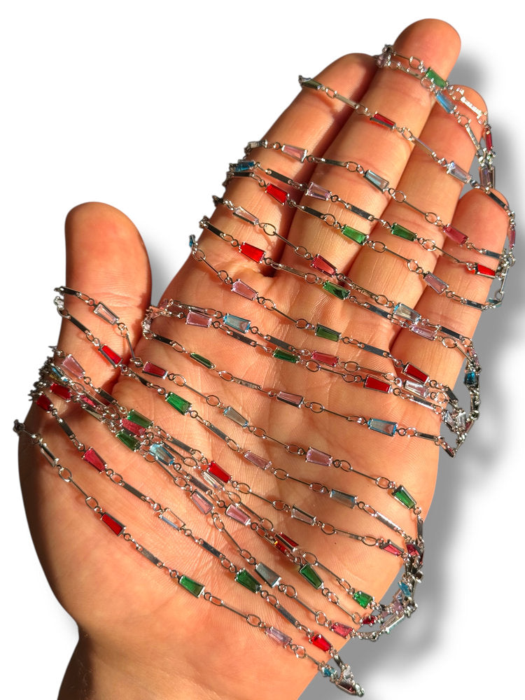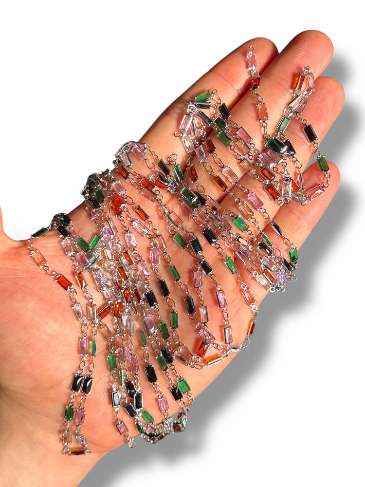 Rhodium Plated Baguette Zircon Chain