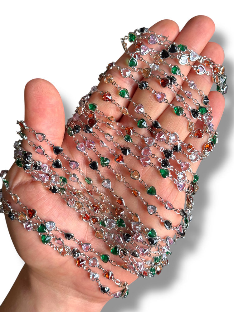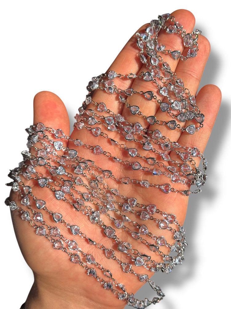 Rhodium Plated Heart Zircon Chain