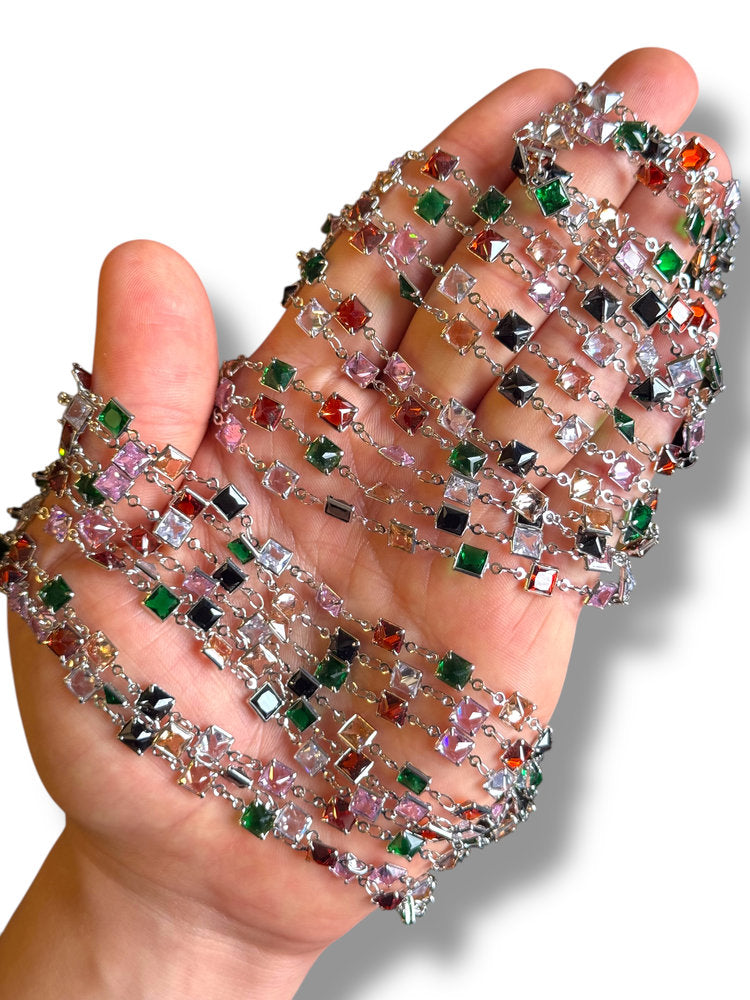 Rhodium Plated Square Zircon Chain