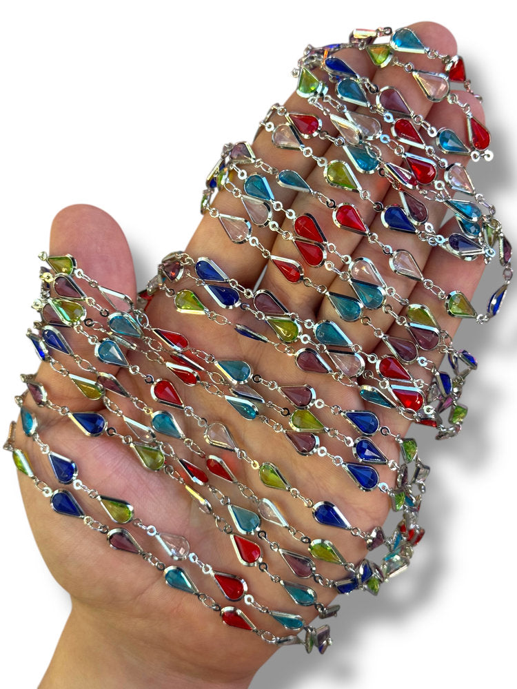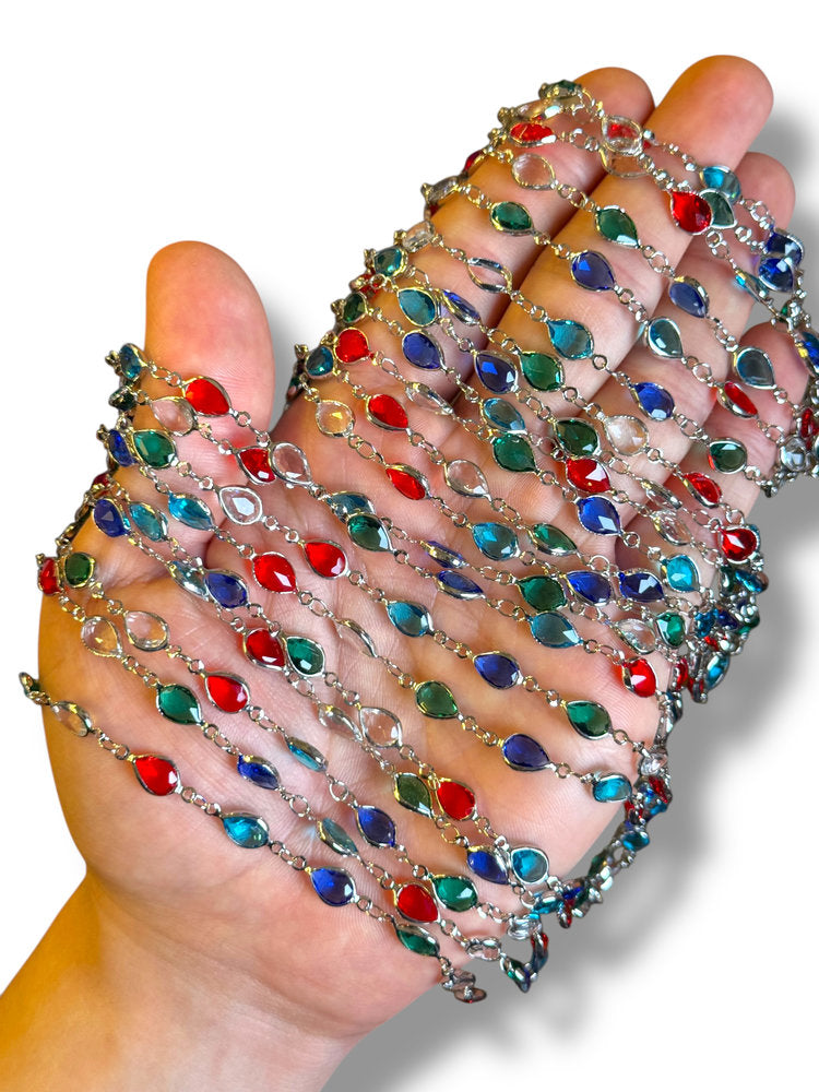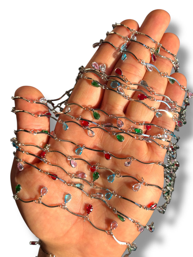 Rhodium Plated Tear Drop Zircon Chain